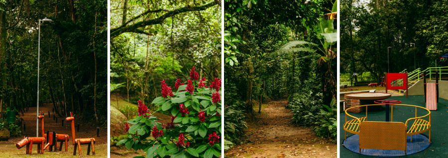 Localizado em área de preservação de mananciais, sua a vegetação é composta por eucaliptal com sub-bosque, remanescente de Mata Atlântica em estágio inicial de sucessão, campo antrópico, brejo e vegetação aquática. Destaques da FLORA: areca-bambu (Dypsis lutescens), aroeira-mansa (Schinus terebinthifolia), caá-açu (Bathysa australis), crindiúva (Trema micrantha), cumaté (Myrcia splendens), embaúba-branca (Cecropia pachystachya), eucalipto (Eucalyptus sp.), jaqueira (Artocarpus heterophyllus), jerivá (Syagrus romanzoffiana), pau-jacaré (Piptadenia gonoacantha), samambaiaçu-com-espinho (Cyathea atrovirens), sibipiruna (Poincianella pluviosa var. peltophoroides), tapiá-guaçu (Alchornea sidifolia) e tucum (Bactris setosa). Já foram registradas 55 espécies vasculares. Inventário de flora 2021.